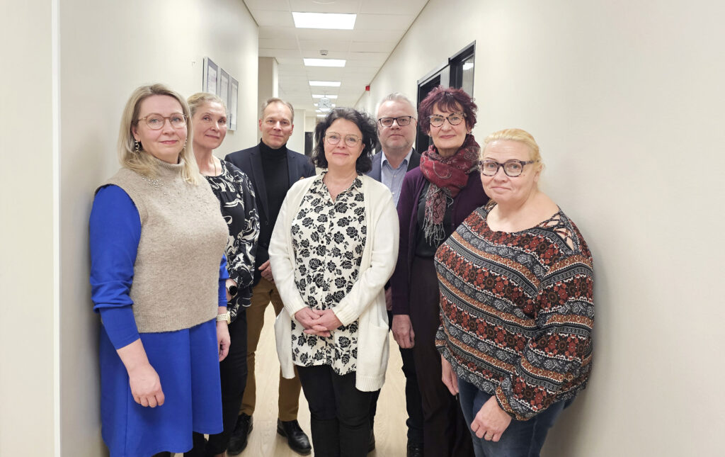 Kuvassa eturivi vas: Sanna Karppanen-Lokka, henkilöstön edustaja Eini Kirsikka-aho, Mika Takkinen. Takarivissä vas: Kaisa Kauppinen, Sari Karttunen, Marko Tuomela ja Mika Parviainen.
