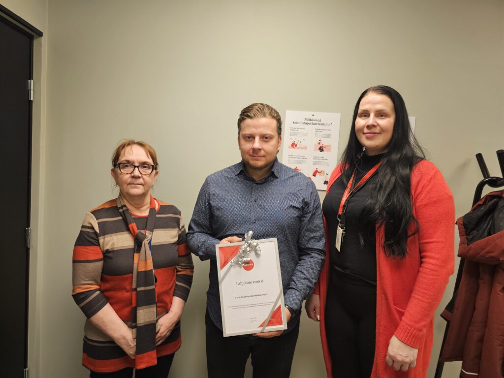 – On hienoa, että Servican henkilöstöllä on tällainen järjestelmä, jonka kautta he voivat vaikuttaa lahjoitusten kohdentumiseen. Kiitän lämpimästi servicalaisia lahjoituksesta, totesi perhetoiminnan päällikkö Timo Soininen lahjoituksen luovutustilaisuudessa.