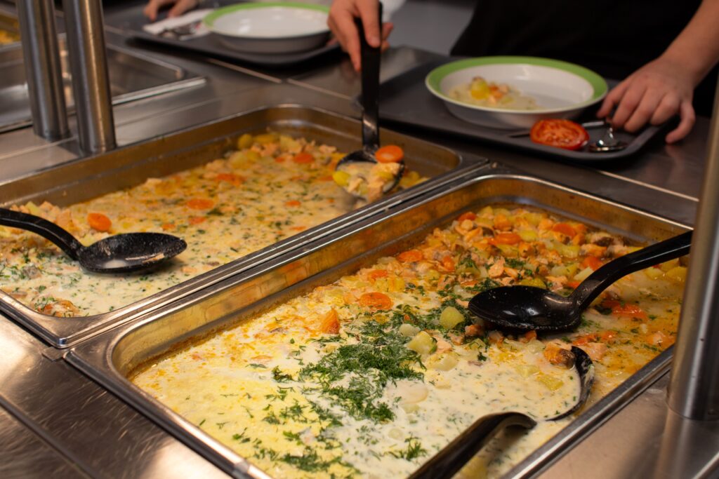 Lohikeitto valikoitui juhlalounaan pääruoaksi, sillä kala on hyvin perinteinen suomalainen juhlaruoka, joka maistuu monelle. Moni oppilas santsasikin lohikeittoa lisää useamman kerran. Lapset myös tykkäsivät siitä, että ruokala oli värikkäämpi ja juhlavampi normaalisti.