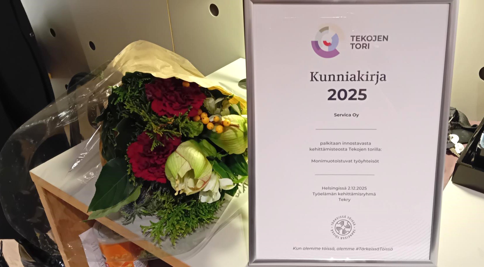 – Olemme suunnattoman iloisia, ylpeitä ja onnellisia tästä palkinnosta. On suuri kunnia tulla huomioiduksi näin, ja tämä tunnustus kuuluu kaikille servicalaisille. Hanke on ollut käynnissä noin 1 vuoden ja 3 kuukauden ajan, ja sinä aikana olemme yhdessä tehneet jotakin poikkeuksellista: 52 henkilöä on työllistynyt hankkeen kautta. Se ei ole vain numero – se on 52 tarinaa, 52 uutta mahdollisuutta ja 52 onnistumista, joissa työyhteisöt ovat olleet avainasemassa. Tämä palkinto ei olisi ollut mahdollinen ilman meidän työyhteisöjämme: ilman heidän avointa mieltään, halua kehittää yhdessä toimintaa, valmiutta nähdä potentiaalia jokaisessa ihmisessä sekä rohkeudessa kokeilla uutta emme olisi tässä tilanteessa. Jokainen kohtaaminen, perehdytys, muokattu työtehtävä ja annettu tuki on ollut osa tätä matkaa. Kiitos siitä teille kaikille, kommentoi projektikoordinaattori Anna-Mari Repo.