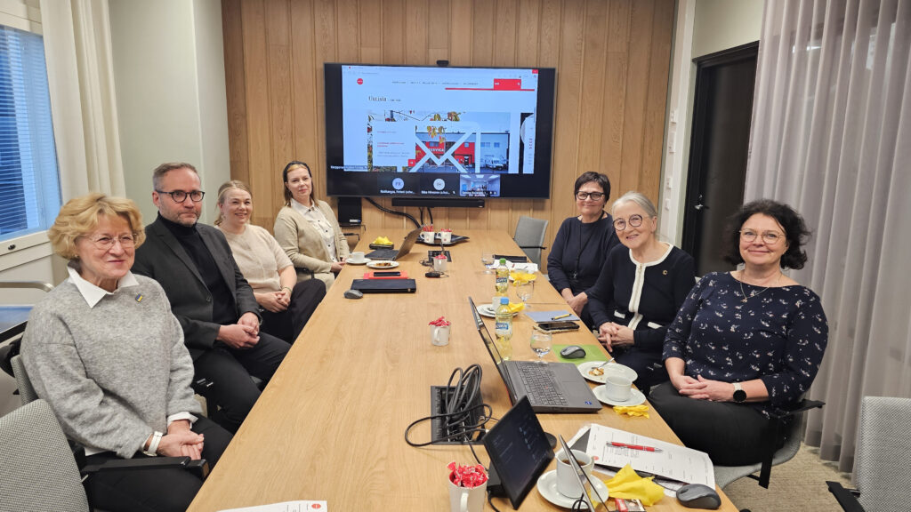 Kuvassa (vasemmalla): Irja Sokka, Mika Takkinen, Sallamaarit Markkanen, Hannaleena Uhlbäck-Ropponen, (oikealla) Mari Antikainen, Vuokko Hämäläinen, Sari Karttunen. Kuvasta puuttuu hallituksen jäsenet Petteri Ristikangas, Taina Laitinen ja Ilkka Hirvonen, jotka osallistuivat kokoukseen etäyhteydellä.